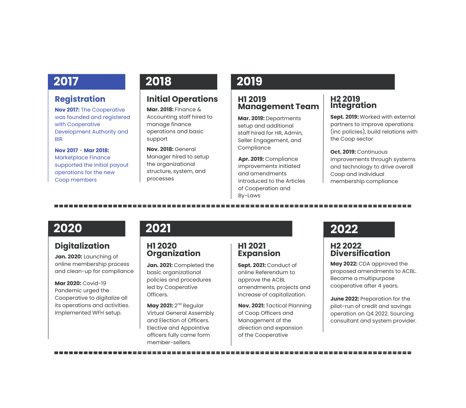 In 2017, the Cooperative was established to bridge the gap between the e-commerce platforms and the local micro sellers so that these beginner sellers can focus on manufacturing and selling their products while the Cooperative participates on their behalf by working with the e-commerce platforms to display, promote, and market the products for the general public to patronize. At the same time, the member sellers can benefit from education and training that the Cooperative will provide to help develop their capabilities in entrepreneurship, marketing, technology, and other business skills.