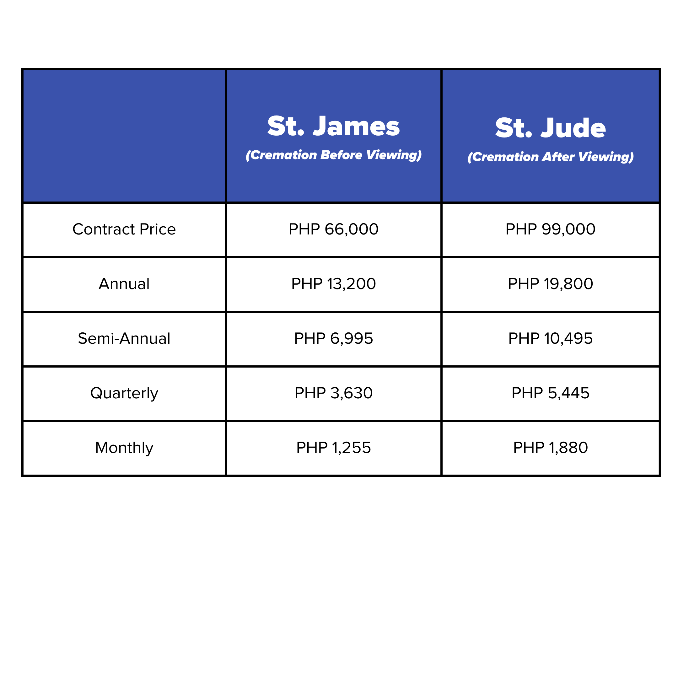 These St. Peter Pre-paid DeathCare Plans are anti-inflationary plans that guarantee your choice of a lifetime Memorial Service Package. Complete with value-added insurance coverage, transferable, assignable, and available at easy installment payments. St. Peter Traditional Life Plans provide outstanding DeathCare Services at very affordable prices.