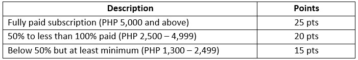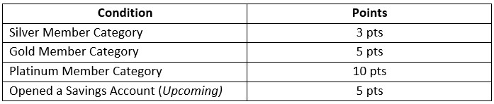 one membership category (Silver, Gold, or Platinum), and an additional 5 points
