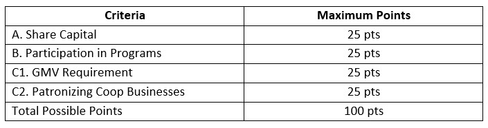 - Earned at least 70 points based on the cooperative’s set